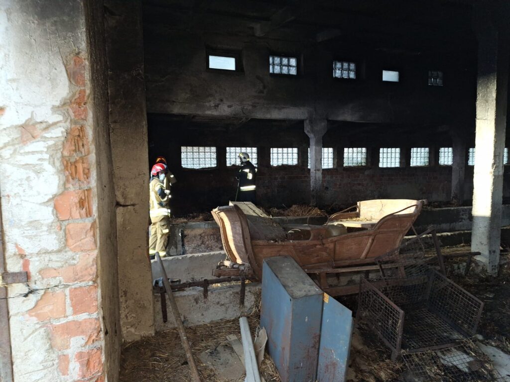 Na szczęście po dojeździe pierwszych zastępów okazało się, że wewnątrz obory nie ma zwierząt, a pożarem objęte są składowane tam baloty słomy.