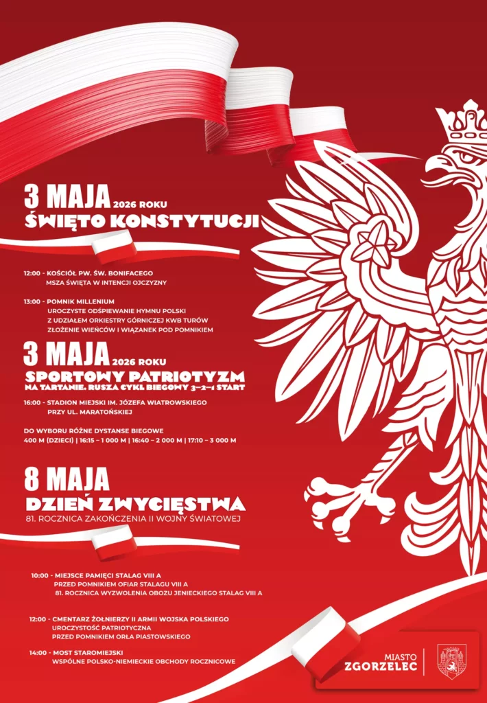 Obchody 235. rocznicy uchwalenia Konstytucji 3 Maja rozpoczną się o godzinie 12:00 mszą świętą w intencji Ojczyzny w kościele pw. św. Bonifacego. Po nabożeństwie poczty sztandarowe oraz uczestnicy uroczystości przemaszerują przed Pomnik Millenium. Następnie, ok. godz. 13:00, przedstawiciele władz samorządowych – w imieniu mieszkańców – złożą kwiaty jako wspólny gest pamięci i hołdu. Uroczystość uświetni wspólne odśpiewanie hymnu Polski przy akompaniamencie orkiestry KWB Turów.