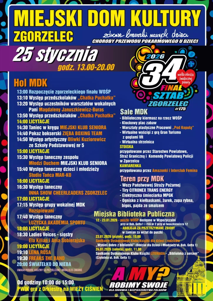 W przeddzień finału, 24 stycznia (sobota) o godzinie 17:00, w Miejskim Domu Kultury w Zgorzelcu odbędzie się wyjątkowy koncert kolęd w wykonaniu Zgorzeleckiej Orkiestry Mandolinistów. Wstęp na wydarzenie jest możliwy za symboliczny wrzut do puszki WOŚP, co pozwala połączyć piękne muzyczne przeżycie z pomocą najmłodszym.
