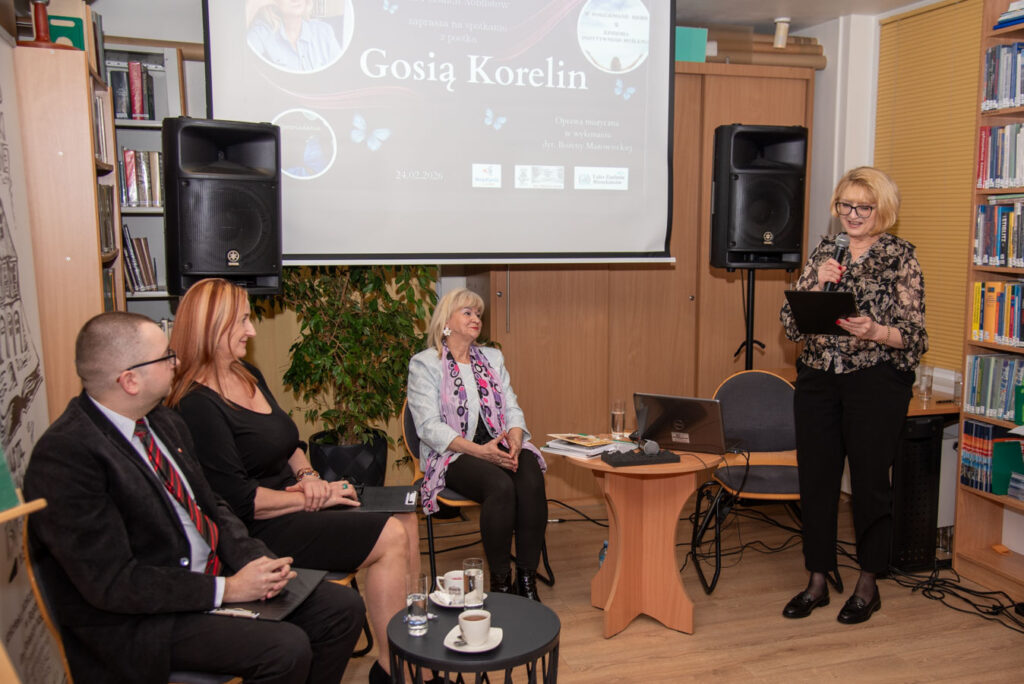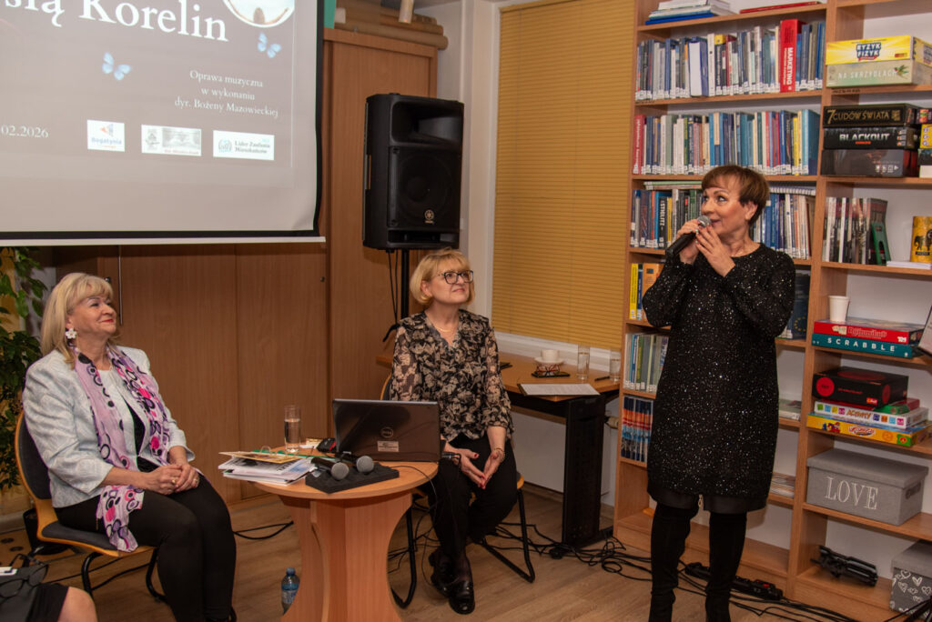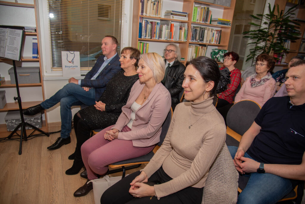 Artystyczny charakter spotkania wspaniale uświetnił nastrojowy występ pani dyrektor Biblioteki, Bożeny Mazowieckiej, która wykonała ponadczasowe, pełne emocji utwory z repertuaru Anny German, Czesława Niemena oraz legendarnego zespołu Maanam, tworząc magiczną, pełną wzruszeń atmosferę .