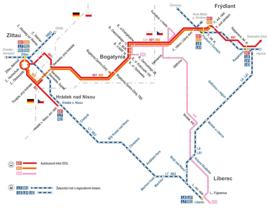 W połączeniu z istniejącą już linią weekendową 691 Zittau – Frydlant – Świeradów Zdrój, połączenie regionu frydlantskiego z innymi regionami ulega znacznej poprawie, bez konieczności wjazdu do Liberca. Jednocześnie poprawia się dostępność regionu libereckiego, zwłaszcza dla sąsiadów z Polski.