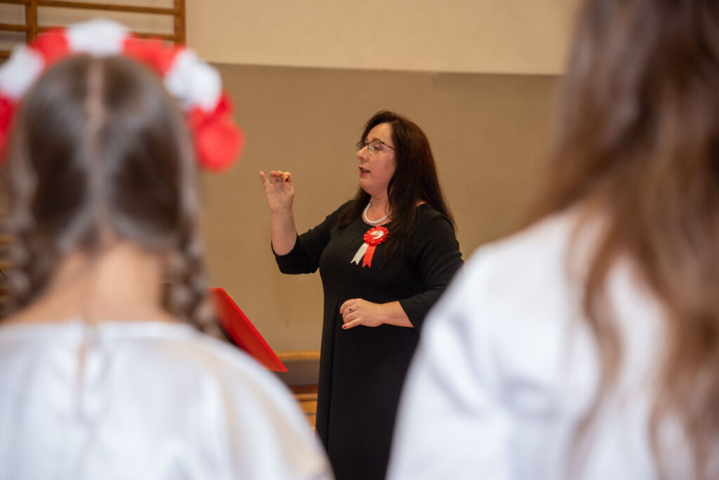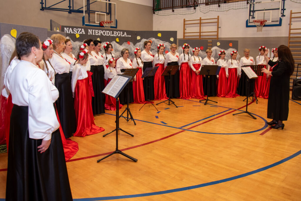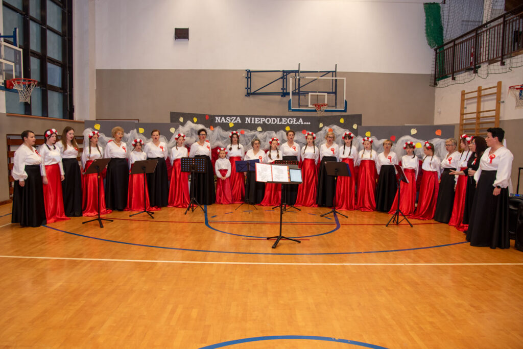 Wieczór wypełniły pełne zadumy występy uczennic szkolnego chóru oraz Zespołu Wokalnego „Amazonki”. Pieśni patriotyczne w ich wykonaniu budowały wyjątkową atmosferę i przypominały, jak wielką rolę w polskiej kulturze odgrywa muzyka niosąca pamięć o wolności i walce o niepodległość.
