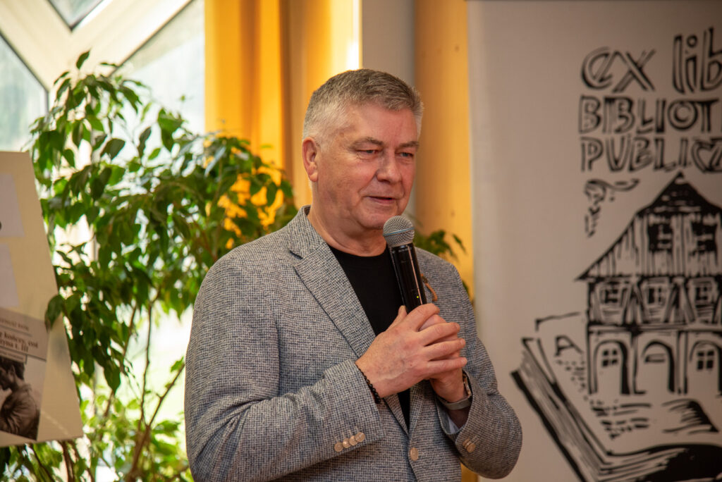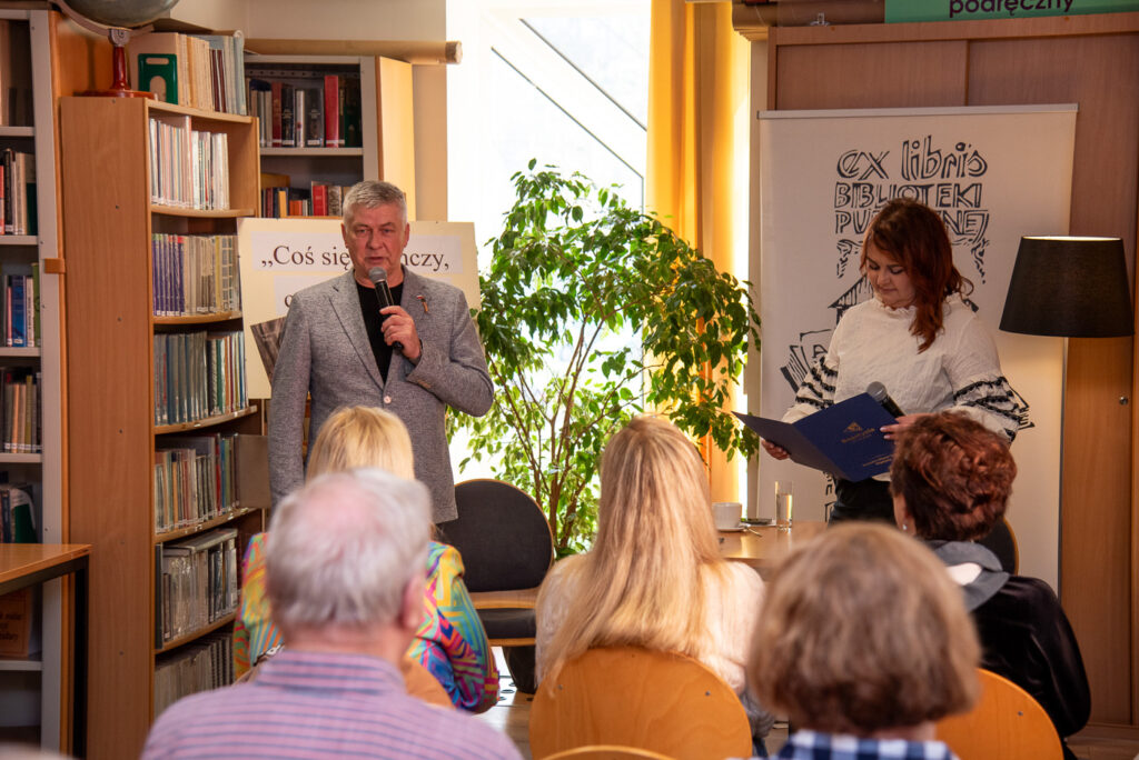 Wydarzenie otworzyła Dyrektor Biblioteki Bożena Mazowiecka, witając zgromadzonych gości oraz przedstawiając program spotkania. Następnie wspólnie z autorem przywitała uczestników prowadząca spotkanie Marta Justyńska i wprowadziła w tematykę wydarzenia.