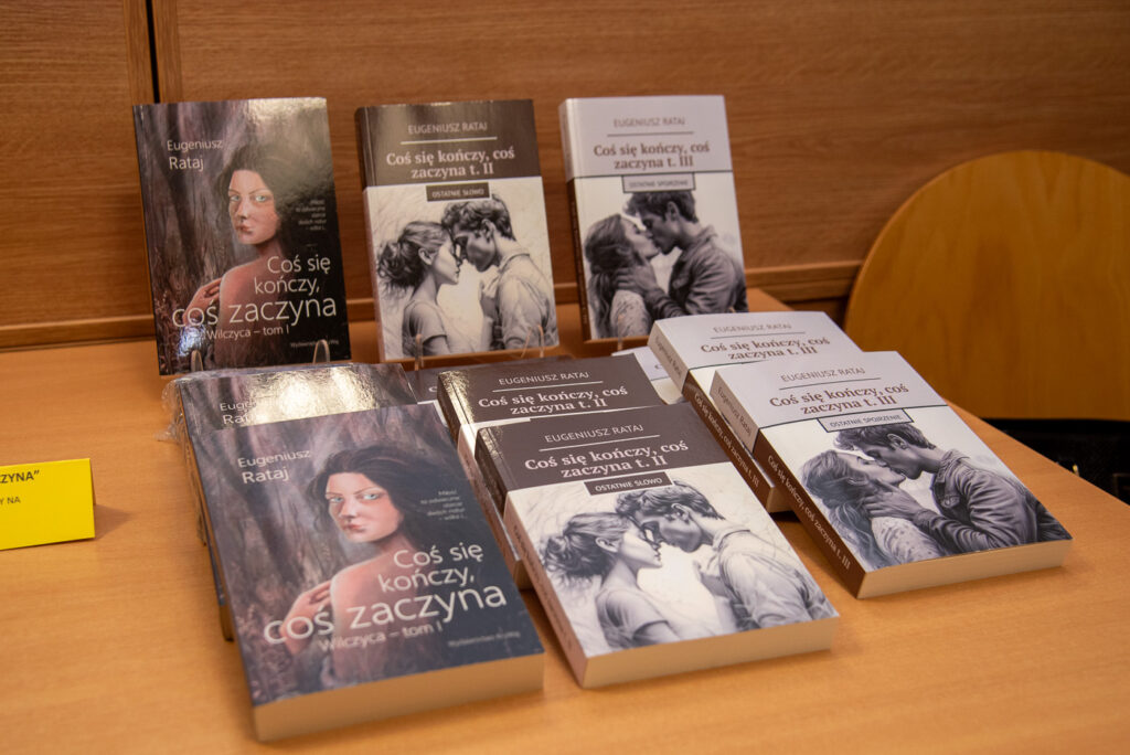 W dalszej części odbyła się rozmowa z Eugeniuszem Ratajem, podczas której autor przedstawił swoje inspiracje twórcze, omówił proces powstawania książek oraz przybliżył sylwetki swoich bohaterów. Kolejne segmenty spotkania obejmowały serię pytań dotyczących najnowszych wydawnictw, planów literackich oraz wskazówek dla osób rozpoczynających działalność pisarską. Uczestnicy mieli również możliwość zadawania pytań, co wzbogaciło spotkanie o element dialogu i bezpośredniej wymiany doświadczeń.