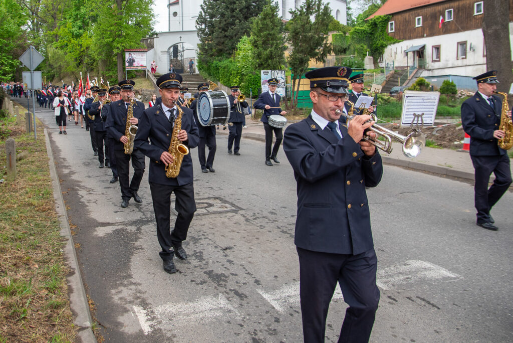 Gminne obchody Święta Narodowego Trzeciego Maja rozpoczęły się uroczystą Mszą świętą w intencji Ojczyzny, odprawioną w kościele pw. św. Apostołów Piotra i Pawła. Po eucharystii uczestnicy, prowadzeni przez Orkiestrę Reprezentacyjną Elektrowni Turów oraz poczty sztandarowe szkół, zakładów pracy i organizacji związkowych, przeszli do Parku im. Jana Pawła II.