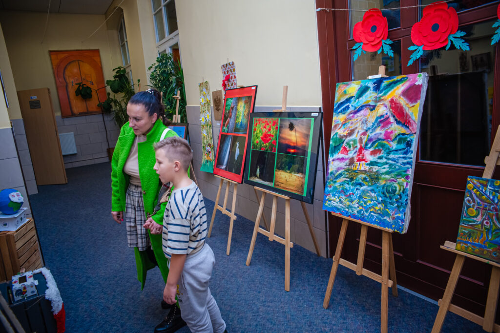 Po występach scenicznych wszyscy udali się na górny hol, przed galerię stopART, gdzie prezentowana była wystawa twórczości osób z niepełnosprawnościami.