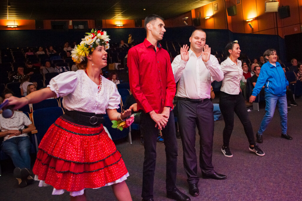 Dyrektor BOK Marcin Woroniecki wraz z Eweliną Gabarą-Walczak serdecznie powitał wszystkich zgromadzonych, przedstawił program imprezy i zaprosił na scenę patrona honorowego imprezy Burmistrza Miasta i Gminy Bogatynia Wojciecha Dobrołowicza, który z niewielką pomocą młodego widza oficjalnie otworzył przegląd.