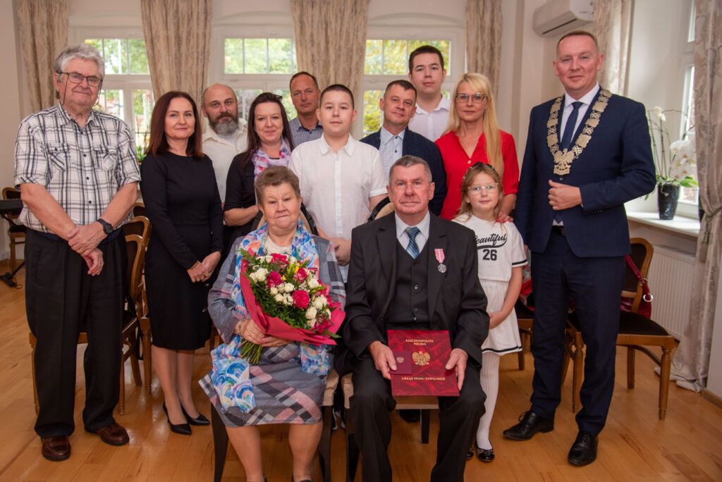 W imieniu Prezydenta Rzeczypospolitej Polskiej Państwo Górscy zostali odznaczeni Medalami za Długoletnie Pożycie Małżeńskie. Z rąk Burmistrza otrzymali także upominek, kwiaty oraz pamiątkowy dyplom.