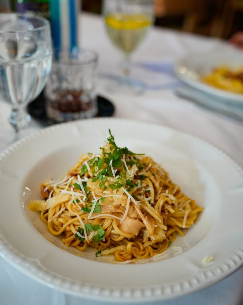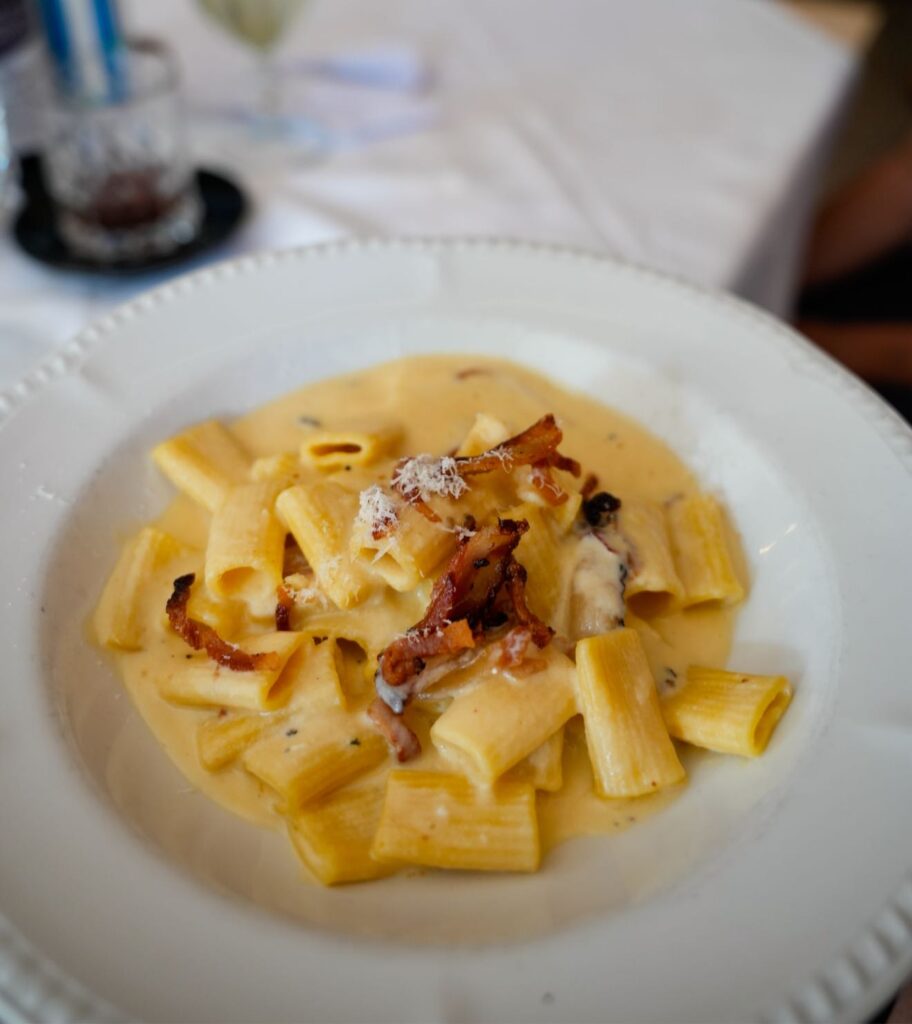 Mieliśmy jakieś 2-3 opcje wybrane, ale młodzi zadecydowali – chcemy makaron! No to padło na Ristorante&pizzeria Espresso! I naprawdę pozytywne zdziwienie. Nie żeby to było jakieś cudo, ale jak na turystyczny deptak tuż przy granicy i knajpkę pewnie mocno nastawioną na zachodnich sąsiadów, było bardzo spoko. Pasta z kręgu sera z grzybami – bardzo fajna, carbonara – klasyka, pizza – no średniawka mocna, co tu dużo mówić, no i cielęcina w sosie z Madery – mega przyzwoite. No, to możecie polecać swoje zgorzeleckie smaki, a ja śmiało mogę polecić to miejsce.