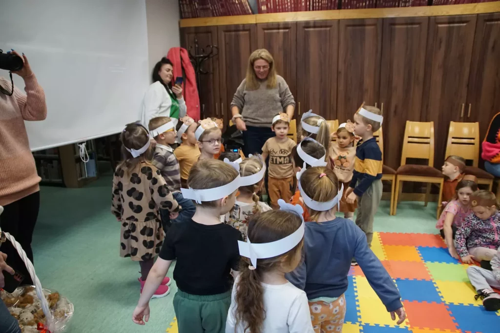 Bibliotekę odwiedziły przedszkolaki, które wzięły udział w spotkaniu z Burmistrzem Miasta Zgorzelec, Rafałem Groniczem. Na początku burmistrz przeczytał dzieciom opowieść „Misia Tulisia” — spokojną i pełną czułości historię o emocjach, bliskości i życzliwości. Maluchy słuchały jej z dużym zainteresowaniem, a później zaprezentowały piosenki i krótkie występy, które wprowadziły wszystkich w radosny, swobodny nastrój.