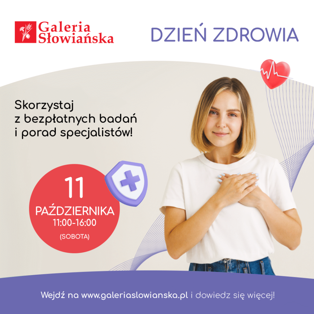 Październik to miesiąc kojarzony z profilaktyką zdrowotną – nie tylko w kontekście onkologicznym. W sobotę, 11 października, w godzinach 11.00 – 16.00 w Galerii Słowiańskiej będzie można skorzystać z szeregu bezpłatnych badań i konsultacji.