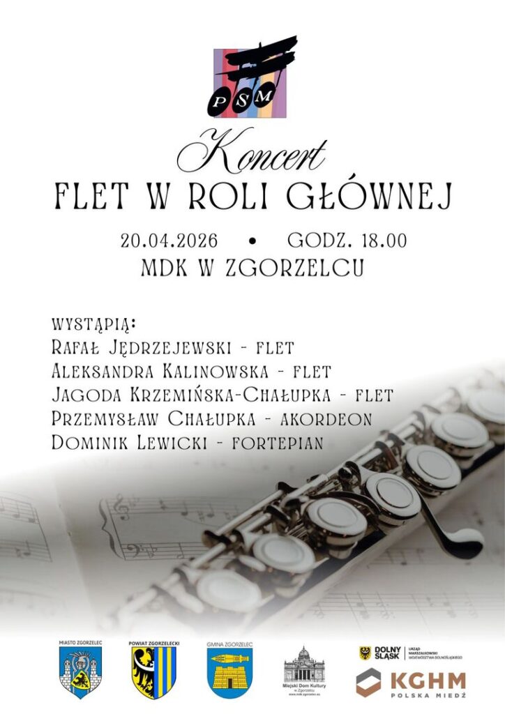 Jednym z artystów będzie Rafał Jędrzejewski – wykładowca Akademii Muzycznej w Gdańsku, laureat licznych konkursów fletowych, ceniony solista koncertujący z orkiestrami w kraju i za granicą. Tego samego dnia poprowadzi również warsztaty w zgorzeleckiej szkole muzycznej. Podczas koncertu usłyszymy go w repertuarze solowym. Na scenie wystąpi także Nexum Duo – Jagoda Krzemińska-Chałupka (flet) oraz Przemysław Chałupka (akordeon), prezentując kameralne brzmienie fletu w połączeniu z akordeonem. W programie usłyszymy również występ Aleksandry Kalinowskiej (flet) oraz Dominika Lewickiego (fortepian) – pedagogów zgorzeleckiej szkoły muzycznej.