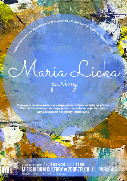 Maria Licka – wieloletnia słuchaczka Transgranicznego Uniwersytetu Trzeciego Wieku. Swoje zainteresowania artystyczne pogłębiała, poznając rozmaite techniki plastyczne w naszej pracowni “Pod Kopułą”.