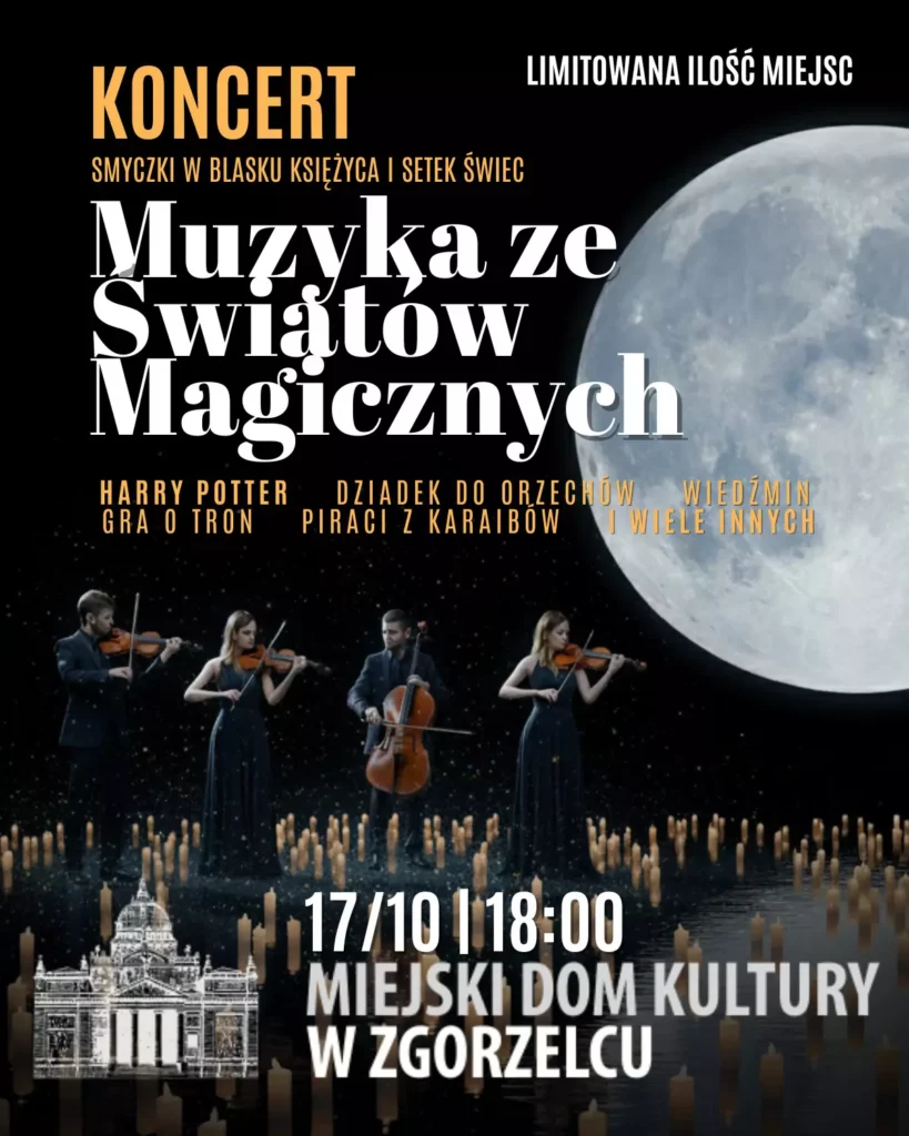 Kwartet smyczkowy zaprezentuje autorskie aranżacje najbardziej rozpoznawalnych utworów – od Harry’ego Pottera, przez Władcę Pierścieni i Grę o Tron, aż po Piratów z Karaibów i ponadczasowego Dziadka do Orzechów. To spotkanie, w którym magia kina łączy się z potęgą muzyki na żywo.