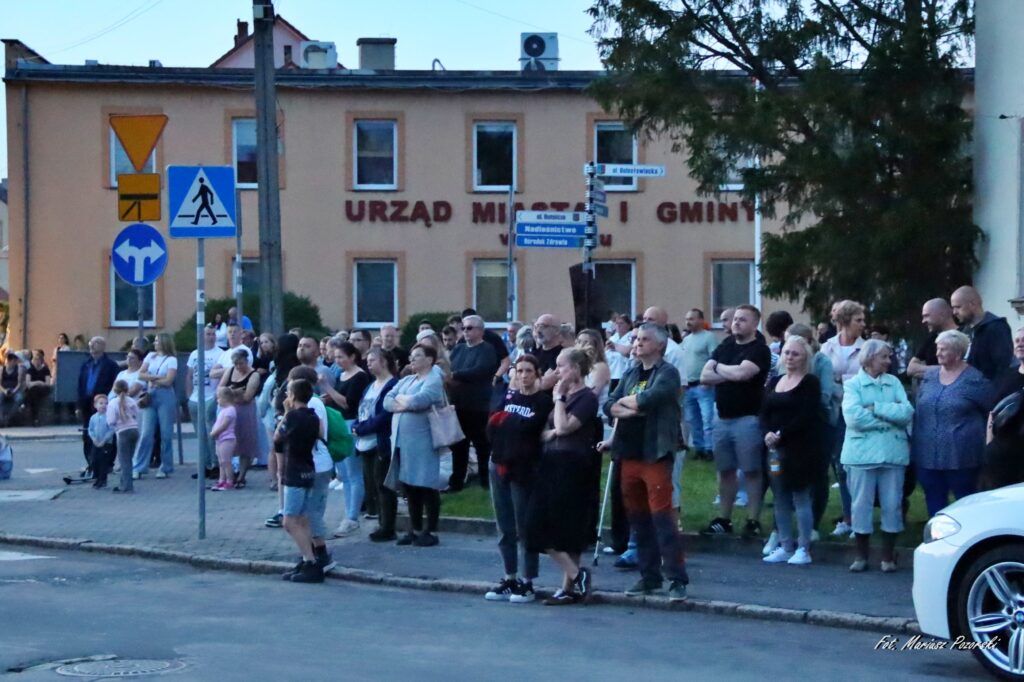 O 21:30 przestrzeń przed Urzędem Miasta i Gminy wypełniła się mieszkańcami, którzy wyruszyli w niezwykłą podróż przez niemal 1000 lat historii naszej małej ojczyzny.