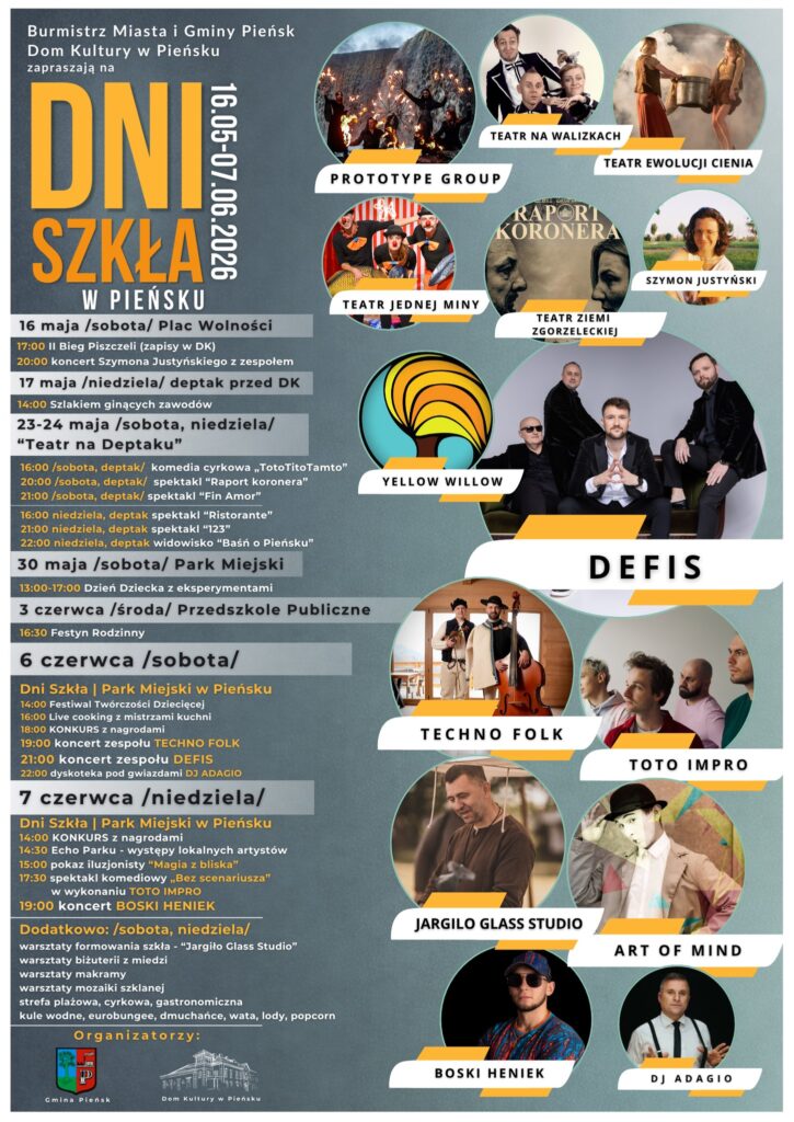 TEATR I WIDOWISKA: deptak przejmą artyści z grup: Teatr Jednej Miny, Teatr Na Walizkach, Teatr Ewolucji Cienia, Teatr Ziemi Zgorzeleckiej oraz Prototype Group. Nie przegapcie spektakularnego widowiska „Baśń o Pieńsku”!
