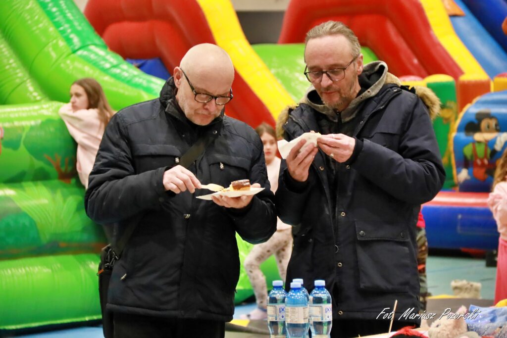 Tradycyjnie ogromnym zainteresowaniem cieszyły się licytacje. Największe emocje wzbudziła licytacja tortu, który osiągnął imponującą kwotę 5 200 zł. Nie zabrakło również innych słodkich akcentów – sernik upieczony przez burmistrza Janusza Pawula oraz Patrycję został zlicytowany za 500 zł.