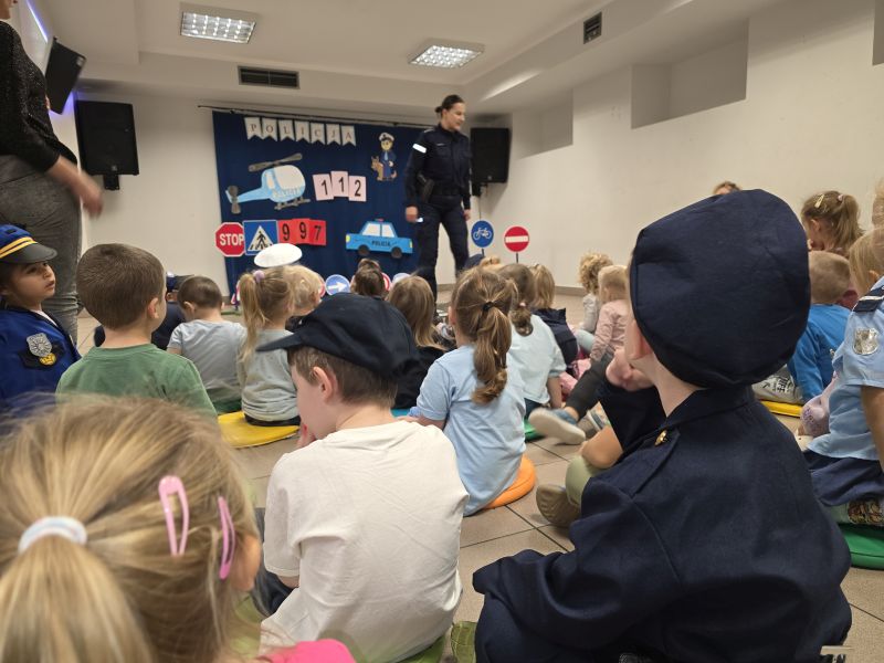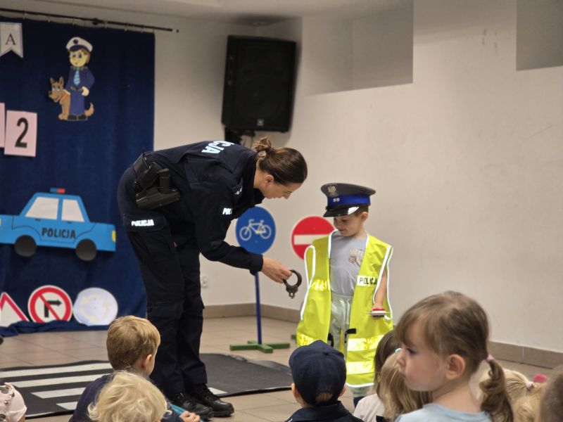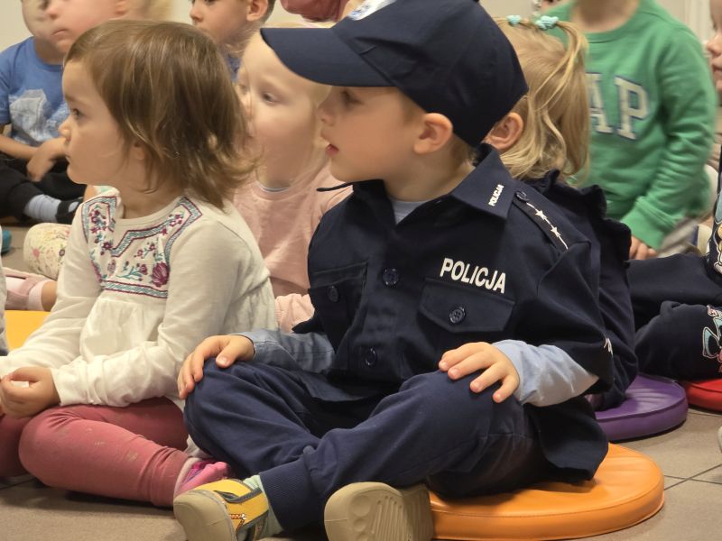 Najmłodsi słuchali z zainteresowaniem, chętnie zadawali pytania i dzielili się własnymi doświadczeniami. Cześć dzieci przyszła przebrana za policjantów co wywołało wiele radości i podkreśliło, że policjant to osoba godna zaufania, zawsze gotowa nieść pomoc.