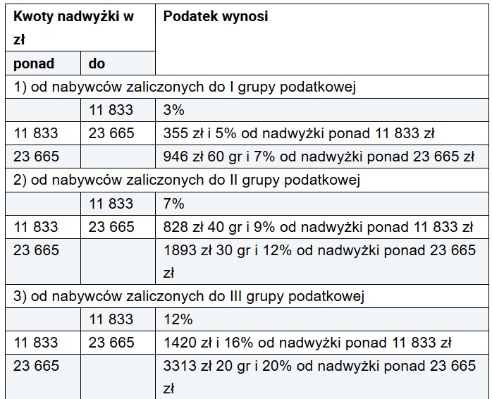 – 36 120 zł – jeżeli nabywcą jest osoba zaliczona do I grupy podatkowej;