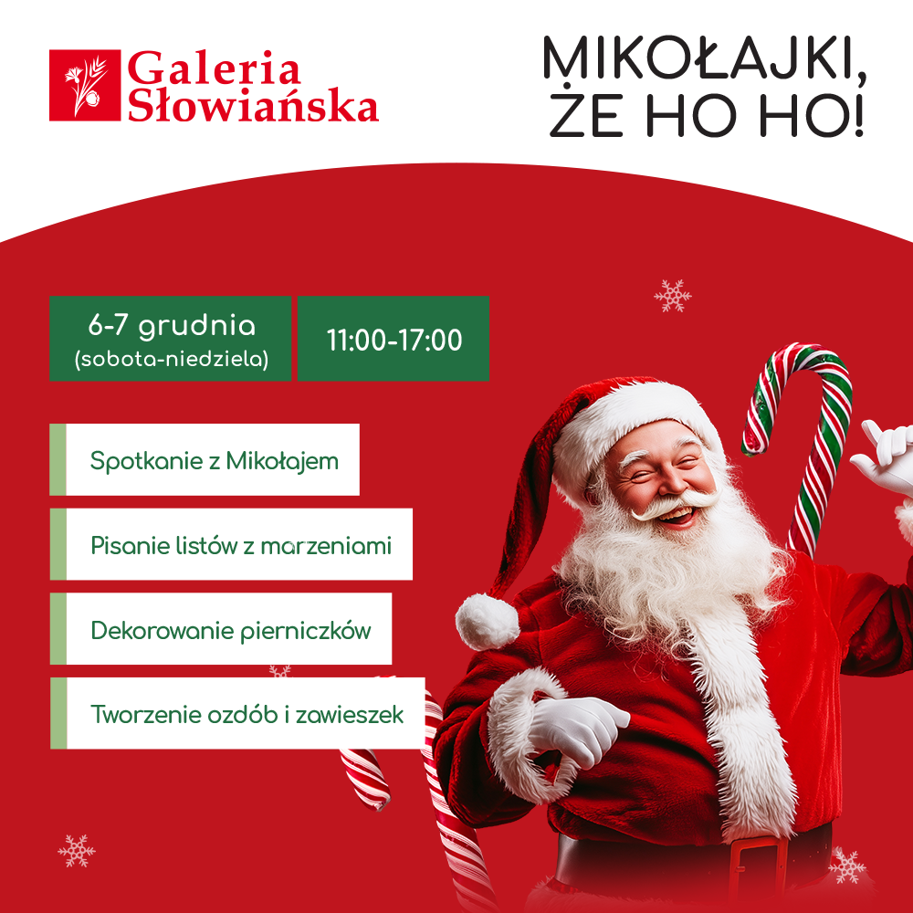 W tym roku Mikołaj obrał kurs na Galerię Słowiańską. W weekend, 6 i 7 grudnia, w godzinach: 11.00 – 17.00 dzieci będą mogły go odwiedzić w świątecznej strefie na pasażu centrum. To spotkanie na pewno pozostanie w ich pamięci!