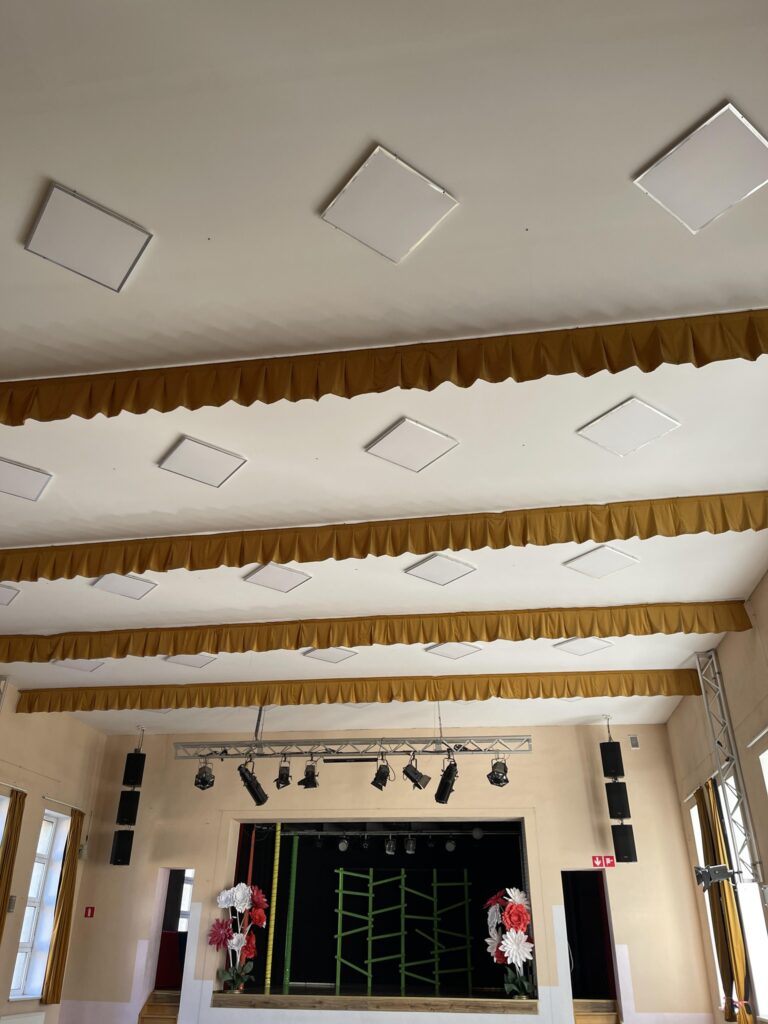 Dotychczasowe, nieefektywne lampy z żarówkami żarnikowymi, zostały zastąpione lampami energooszczędnymi, dzięki czemu przestrzeń w GOK jest właściwie doświetlona.
