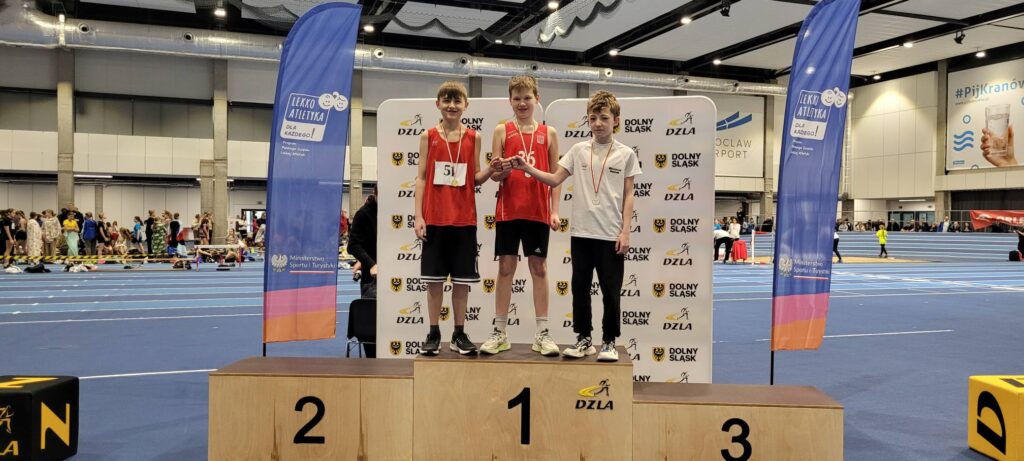 Jako pierwsi do rywalizacji stanęli chodziarze na dystansie 2 km. Wśród chłopców bezkonkurencyjny okazał się Tymon Zawada, który jako pierwszy pojawił się na mecie, zdobywając złoty medal i tytuł Mistrza Dolnego Śląska. Drugie miejsce wywalczył Jan Sieczko, a brązowy medal trafił do Tymka Brodzińskiego.