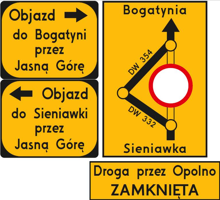 Dla samochodów osobowych i transportu zbiorowego z Sieniawki i Bogatyni wyznaczono objazd przez Jasną Górę a ciężarówki mogą korzystać tylko z dróg wojewódzkich 352 i 332.