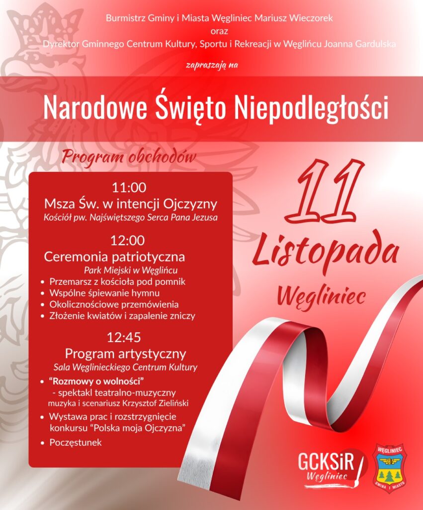 • 11:00 – Msza Święta w intencji Ojczyzny (Kościół pw. Najświętszego Serca Pana Jezusa w Węglińcu)