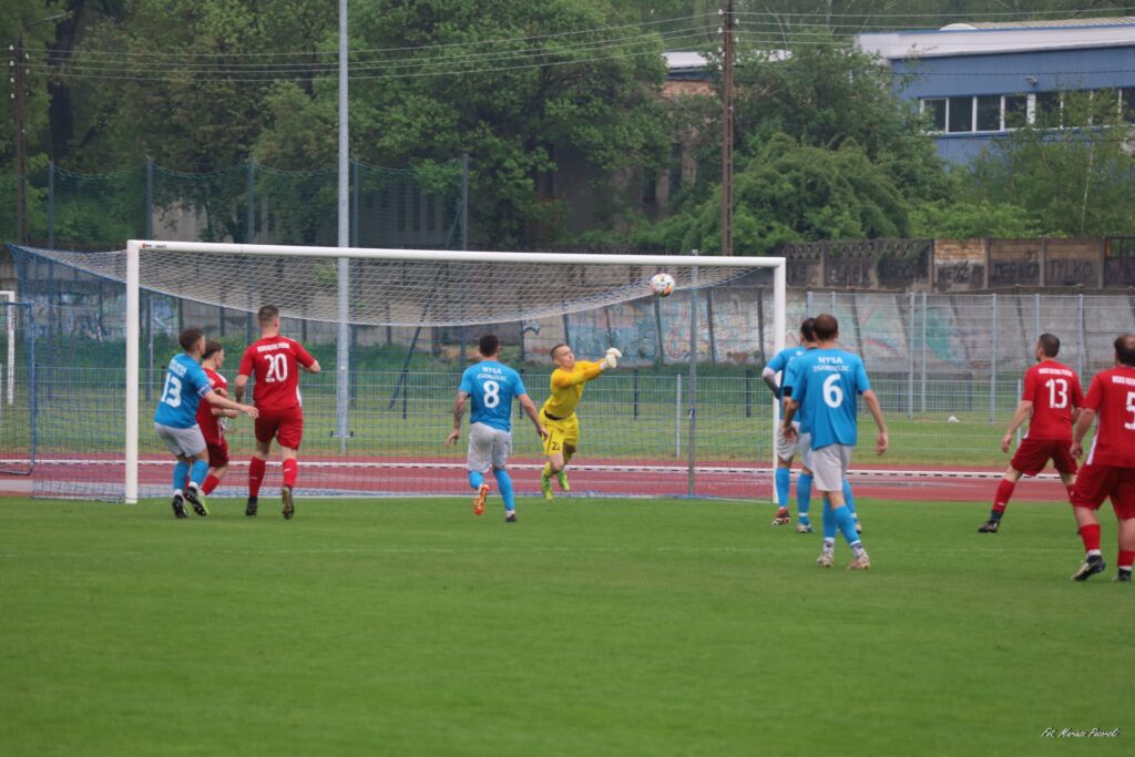 Niestety, co jest już normą w drugiej połowie, tracimy trzy gole i mecz przegrywamy 2:4. Tak było z Nowogrodźcem, z Apisem i tak było teraz z Nysą. W drugiej połowie w zasadzie grała już tylko jedna drużyna i niestety była to ekipa że Zgorzelca. Swoją przewagę goście udokumentowali zdobyciem trzech goli i zwyciężyli zasłużenie 4:2. W 50 min. meczu do remisu doprowadził P. Kazimierczak, z jego strzałem na bramkę nie poradził sobie S. Gniadzik, bramkarz Hutnika zastępujący na tej pozycji nieobecnego K. Nowaka. Już cztery minuty później goście objęli prowadzenie 3:2. Składną akcję kilku zawodników Nysy celnym strzałem sfinalizował wprowadzony po przerwie do gry D. Jurgowski. Ten sam zawodnik w 75 min. meczu ustalił wynik końcowy meczu, zdobywając czwartego gola dla przyjezdnych. Ostatecznie Nysa wygrała mecz derbowy z Hutnikiem 4:2. Być może losy tego meczu mogłyby potoczyć się nieco inaczej, gdyby w 83 min. meczu D. Kowal wykorzystał rzut karny. Niestety po jego strzale na drodze piłki do bramki stanęła poprzeczka. Ostatecznie przegrywamy ten prestiżowy mecz i nasza sytuacja staje się coraz bardziej trudna. Niemniej walczymy do końca, pozostało jeszcze sześć meczów i każdy z nich będzie dla Hutnika meczem finałowym. Gościom ze Zgorzelca gratulujemy wygranej i trzymajcie za nas kciuki, jeśli znowu chcecie zagrać na pięknym stadionie i przy sztucznym oświetleniu.