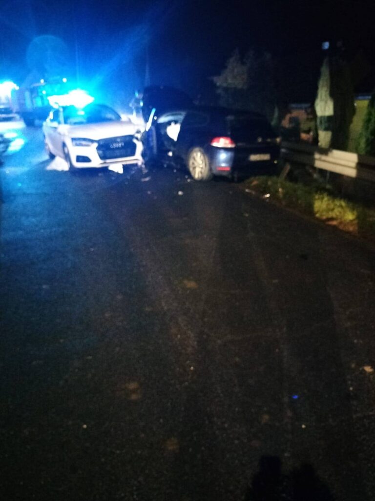 W wyniku zderzenia dwóch samochodów osobowych, jedna osoba została poszkodowana – po udzieleniu jej pierwszej pomocy została przetransportowana do szpitala. Na czas prowadzonych działań ratowniczych i czynności policyjnych droga była całkowicie zablokowana przez kilka godzin.