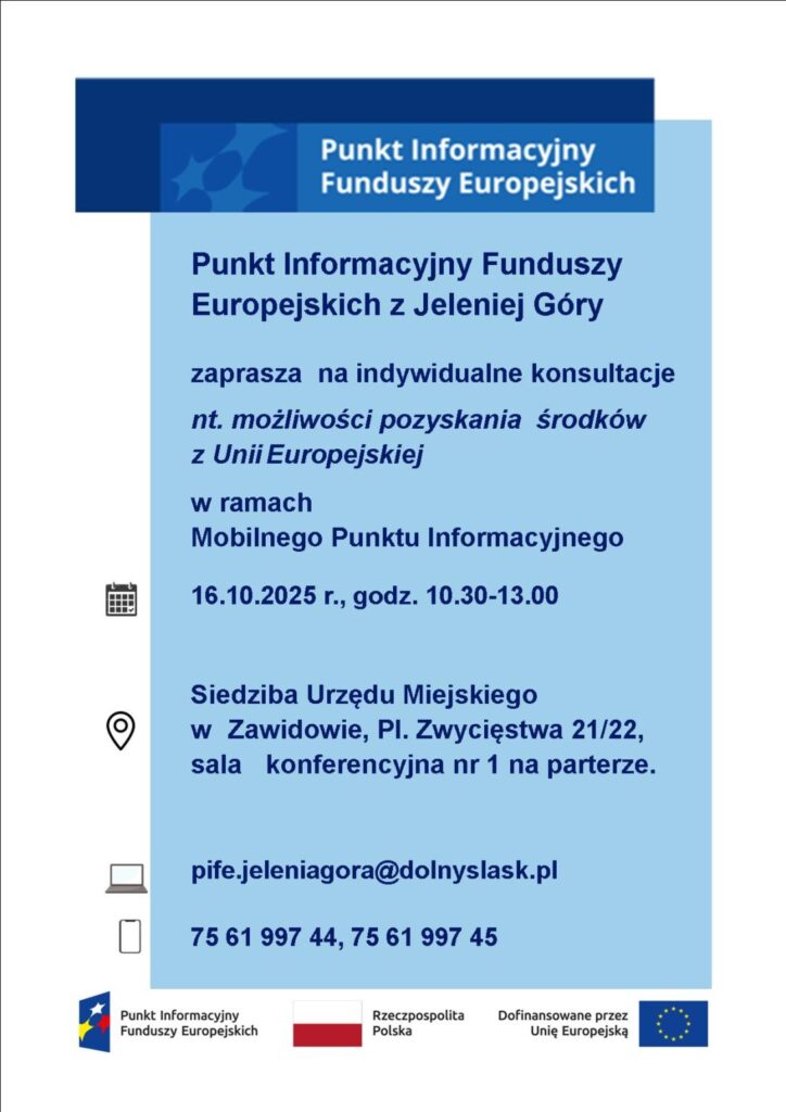 Mieszkańców Zawidowa i okolic zapraszamy na konsultacje w ramach Mobilnego Punktu Informacyjnego: 16 października 2025r. w godz. 10.30-13.00