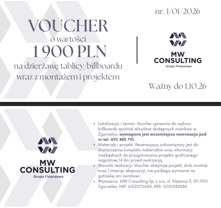 Wśród tegorocznych darczyńców znalazła się również firma MW Consulting, która przekazała na finał WOŚP dwa wartościowe vouchery: