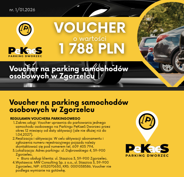 🔴 Voucher o wartości 1788 zł – na roczne miejsce parkingowe dla samochodu osobowego.