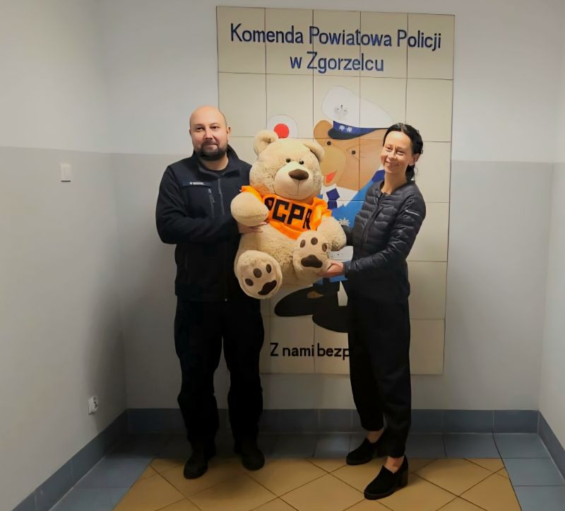 Wczoraj Powiatowe Centrum Pomocy Rodzinie w Zgorzelcu przekazało maskotkę funkcjonariuszom z Komendy Powiatowej Policji w Zgorzelcu, symbolicznie zaznaczając wspólne działania na rzecz przeciwdziałania przemocy.