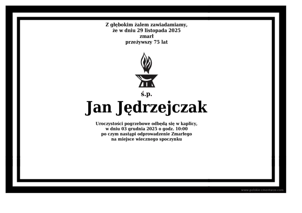 Uroczystości pogrzebowe odbędą się w środę, 3 grudnia 2025 roku o godzinie 10:00 na cmentarzu komunalnym w Zgorzelcu.