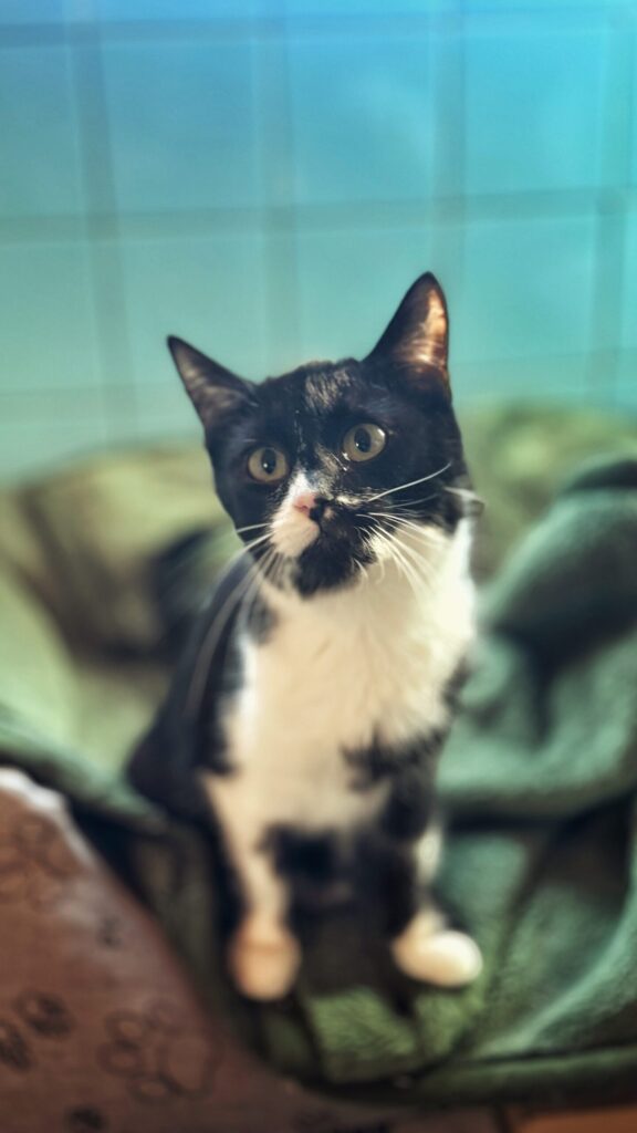 To bardzo kontaktowy i czuły maluch. Lubi się przytulać, chętnie przychodzi na głaskanie i z ciekawością wita każdego, kto wchodzi do kociarni. Wyraźnie szuka bliskości człowieka i wspólnego czasu.